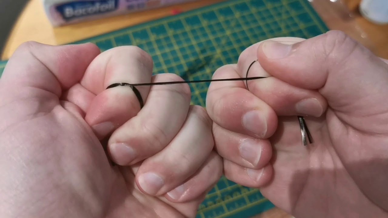 La fibra di carbonio ha una durata incredibile, 10 volte più grande dell'acciaio, ma solo se vengono allungati senza piegarsi. Qui qualcuno cerca di rompere un fascio di fibra di carbonio allungandolo con le mani, ma la fibra resiste e non si rompe. Ma quando lo fa con un nodo, la fibra si rompe immediatamente.