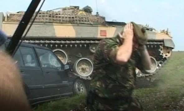 Durante le riprese di un video sulla sicurezza dei carri nell'esercito, Un carro distrugge l'auto del cameraman britannico Steve Haskett. Il carro avrebbe dovuto fermarsi prima in questa ripresa, qualcosa che alla fine non è accaduto. Il carro è passato sopra la jeep, distruggendola completamente.