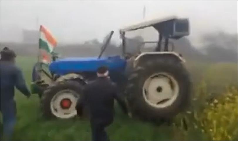 Una dimostrazione di guida di agricoltori in India non è andata come previsto, dopo che il trattore si è ribaltato, il suo autista è caduto a terra, e il trattore ha intrapreso una corsa folle da solo.