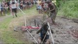 Sega-ruota bici su un lago ghiacciato