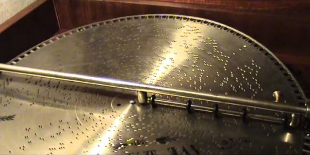 Molti dispositivi musicali automatici furono inventati alla fine del XIX secolo, ma la maggior parte è stata dimenticata con l'avvento dei giradischi e del vinile. Uno di questi era il carillon con dischi di metallo, come questo Mira Concert Grand del 1905. Qui suona un CD con il pezzo classico 'Ave Maria' di Franz Schubert.
