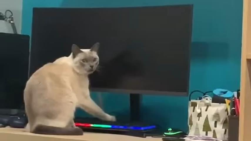 Un gatto che si diverte a fare danni e lanciare oggetti in casa.