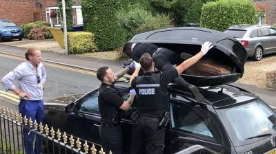 Una coppia dall'Inghilterra ha portato un passeggero inaspettato dopo la loro vacanza in Francia. Dopo aver sentito bussare dal bagagliaio sul tetto dell'auto, hanno chiamato la polizia. La polizia ha trovato un uomo sudanese nel suo bagaglio.