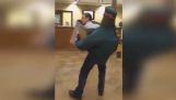 Gli amici erano appesi uno dopo l'altro in un'oscillazione improvvisata sull'acqua, Fino a quando alcuni non avevano l'idea di una farsa.