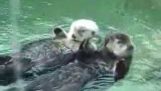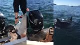 Una balena gioca con un visitatore presso l'acquario di SeaWorld Orlando.