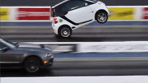 Una Smart con la Toyota Paseo del motore 1.500 cc (90 CV) contro una Mustang Shelby GT-500 (660 CV). Se notate alla fine perde la smart per la decima gara, Dopo aver subito danni alla sua cintura motore dopo Souza.