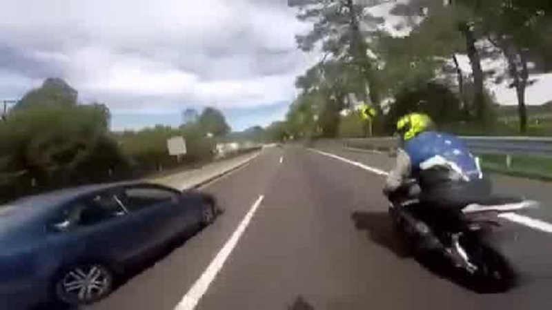 Una donna decide di tirare il freno a mano per evitare che il suo fidanzato per rendere compensato con i motocicli. La scena è avvenuta domenica 3 luglio 2016 sull'autostrada Messico-Acapulco, vicino la città di Tres Marias in Messico.
