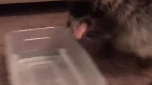 Il procione lava lo zucchero filato e il cibo con grande cura
