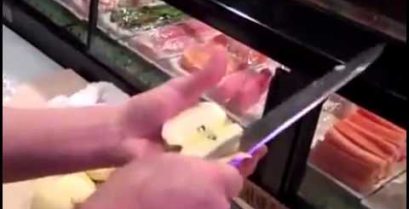 Un cuoco professionista sbuccia una mela. Apparentemente asiatici.