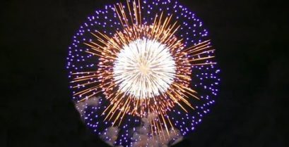 Uno spettacolo impressionante a Kuwana Suigo Festival Fireworks in Giappone.