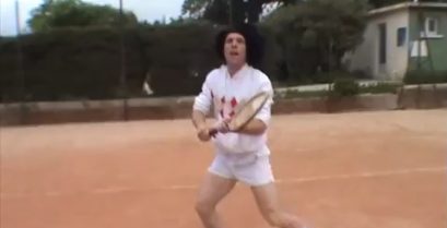 Il Rémi Gaillard giocando a tennis, ma purtroppo è un po' scomodo.
