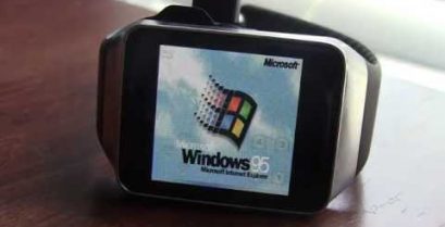 Ecco Windows 95 in esecuzione sull'orologio Samsung Gear Live con Android Wear 4.4W.