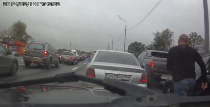 Il 14 settembre e durante ingorghi di traffico in modo della Russia, un uomo esce dalla sua auto a disputare con il driver della parte anteriore della vettura. L'autista della jeep si sta muovendo apposta [...]