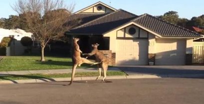 Nel Galles meridionale, Australia, due kabgadizoyn maschio di canguro in mezzo alla strada. Per più di 5 minuti, i due canguri vengono spinti e colpiti a vicenda con pugni e calci fino a rompersi [...]