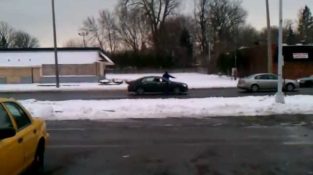Un uomo che ha dormito fuori danno con la sua auto, chiede aiuto da un automobilista di passaggio. Ma il modo in cui cerca di spingere la macchina è un po' poco ortodosso...