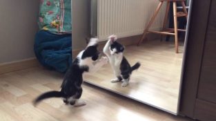 Gattino vede per la prima volta uno specchio