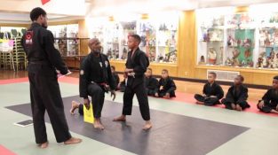 L'insegnante di arti marziali Sharath Jason Wilson dà una lezione di buona vita di Bruce, un giovane studente durante un esercizio presso la Cave of Adullam Transformational Training Academy di Detroit, Michigan. mentre [...]