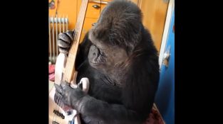 Il Koko il gorilla a suonare il basso insieme con la Pulce