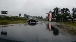 Un'auto balla al ritmo del balletto Lo Schiaccianoci, scivolando su una strada bagnata.