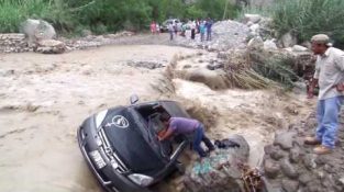L'uomo fugge da auto Stuck in Floodwaters
