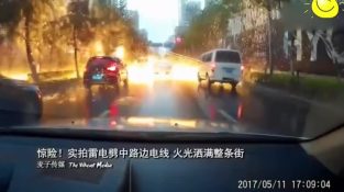 Un fulmine incredibile e forte entusiasmato tutti e ha reso il traffico verso una posizione ancora.
