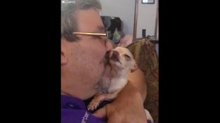 Un Chihuahua non può ottenere abbastanza baci il proprietario, insistendo di più.
