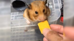 Un criceto muove all'interno di un grande percorso di tubi trasparenti, fino a raggiungere il nido.