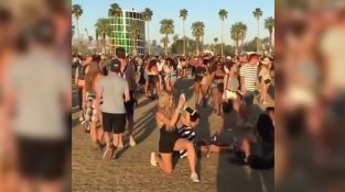 Un partecipante al festival musicale di Coachella si tiene ogni anno nella Coachella Valley in California, Egli ha osservato che la maggior parte delle persone nel Festival tirato foto e impegnati con il loro cellulare.