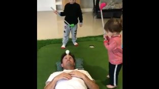 Un padre prova trickshot campo pericoloso, con l'aiuto del figlio.