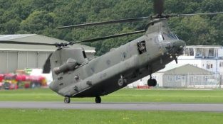 Allo spettacolo 'Wings and Wheels' tenutosi all'aeroporto di Dunsfold nel Surrey (Inghilterra), il pilota di un Chinook CH-47 rende un acrobazie improbabili.
