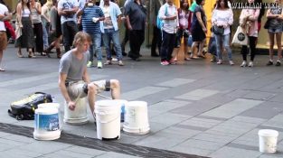 Un altro batterista strada che sembra essere posseduto dal dio delle percussioni