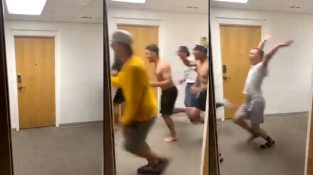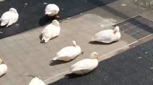 Molte persone usano paura in un corridoio, per essere salvato da un anatroccolo terrificante.