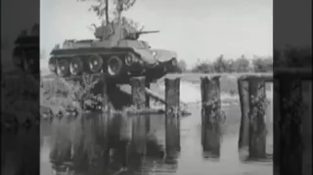 In un vecchio film, Vediamo un carro armato sovietico T-34 per passare sopra un ponte, che è stato appena creato per il passaggio di carri.