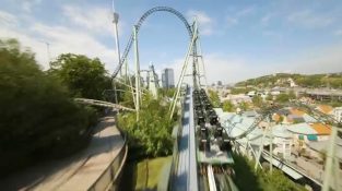 Dotato di una fotocamera, un drone segue le montagne Helix al parco di divertimenti Liseberg a Göteborg, in Svezia. Musica: Night Stalker – Salvaonda.