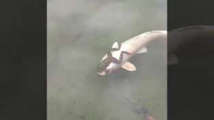 Afferrato su un pesce, una rana fa una passeggiata sotto l'acqua. Infatti la rana maschio è probabilmente cercando di ram. Come ha trovato corrispondenza, aggrappato alla prossima cosa migliore [...]
