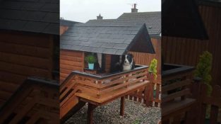 Un cane in Saintfield Irlanda del Nord gode il lusso di canile, che ha una finestra e balcone.