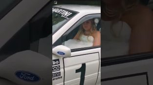 Una sposa viene fornito in una vettura Ford Escort RS Cosworth per il trasporto in chiesa. prima di iniziare, il conducente sembra dire che l'area sulla rotta non è necessario. Cosa potrebbe [...]