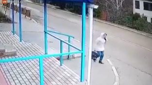 Una donna in Russia brevemente perde conoscenza e cade in mezzo alla strada, Una volta che passa una bus.