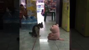 Non sappiamo ciò che ha reso il piccolo animale farcito, ma il match di wrestling è durato solo pochi secondi.