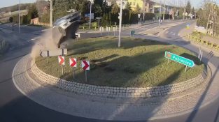 Domenica 12 aprile 2020 nella città di Rąbień, in Polonia, un'automobile Suzuki Swift è decollata a diversi metri di altezza in una rotonda. La guida, un uomo di 41 anni, sopravvissuto all'incidente.