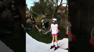 Un papà costruisce un 'centro di neve' nel cortile per le sue due figlie, durante la quarantena.