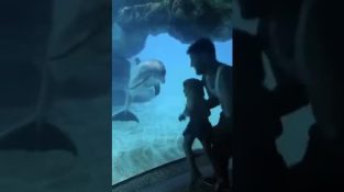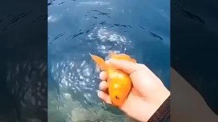 Un uomo lancia un pesce rosso nell'acqua di un lago, e questo gli torna in mano.