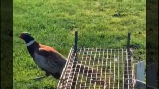 Una pernice viene liberata dalla sua gabbia, ma subito dopo si scontra con un albero.