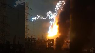 Un cortocircuito in una centrale elettrica in Messico genera un grande arco di tensione in 400 cavi di tensione.000 Volt.