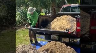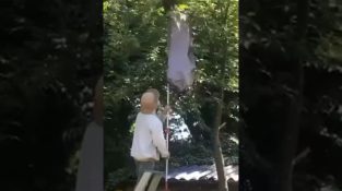 Un uomo tenta di rimuovere un nido di vespe da un albero nel suo giardino. Cercherà di posizionare il nido all'interno di un sacco che tiene su uno di metallo [...]