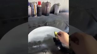 Un bellissimo dipinto di un paesaggio notturno con spray e altri metodi non convenzionali.