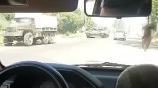 Serbatoio ad alta velocità che si avvicina molto a un'auto.