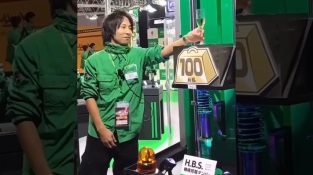 A un salone dell'auto, TEIN dimostra la sua sospensione “EnduraPro Plus HBS”. Un bicchiere di vino è posto sopra un peso di 100 kg, che cade in caduta libera sulla sospensione.
