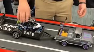 Un dipendente del produttore di ganci Weigh Safe, ci mostra il modo corretto di distribuire il peso su un rimorchio, in modo che ci sia un traffico più sicuro.