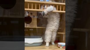 Un gatto apre l'armadietto in cui è chiuso girando la chiave con la zampa.